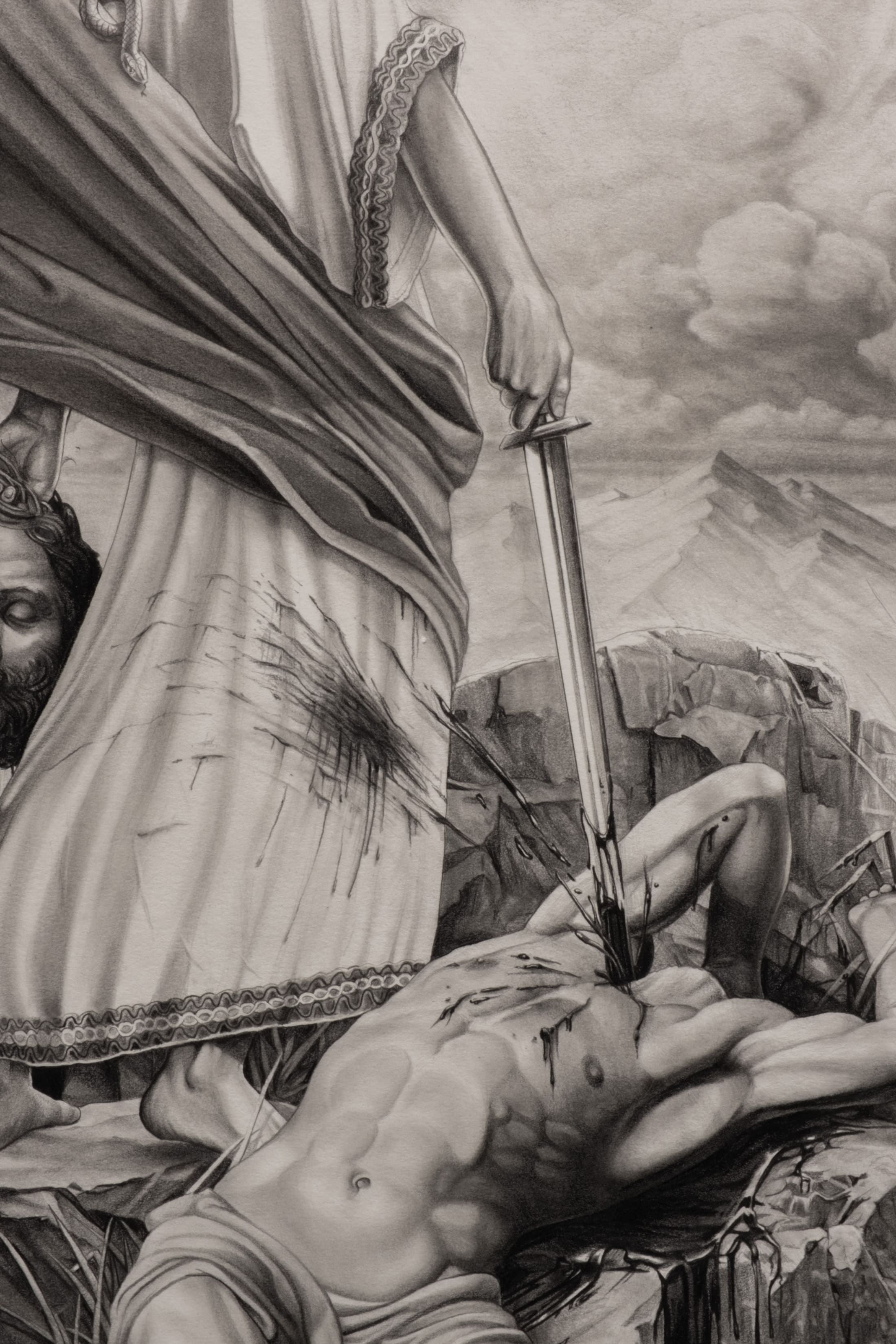 The cool thing with mythology is that it is never true or false. It can and should be adapted to our times. Myths are often used to portray moral values and the consequences of human choices. In the first of an upcoming series I am trying to modify these myths with a classical aesthetic to portray contemporary values and hold accountable for their choices the men that are in these myths.